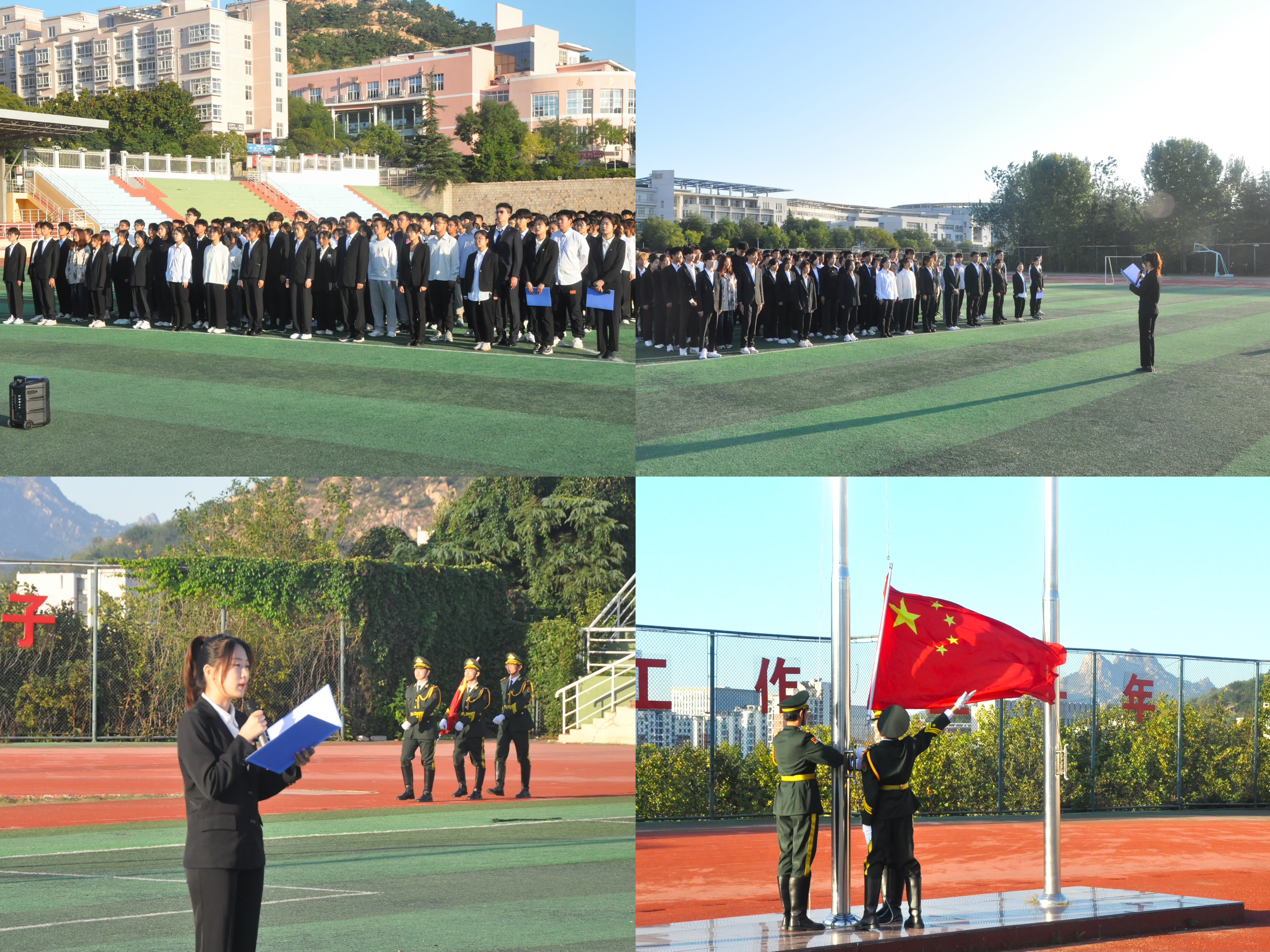 山河锦绣,国盛家兴。9月28日,迎着清晨第一缕阳光,学院举办了“情满中秋、喜迎国庆”主题升旗仪式,同学们齐聚南苑操场,共同见证五星红旗冉冉升起的庄严时刻,庆祝新中国74周年华诞。