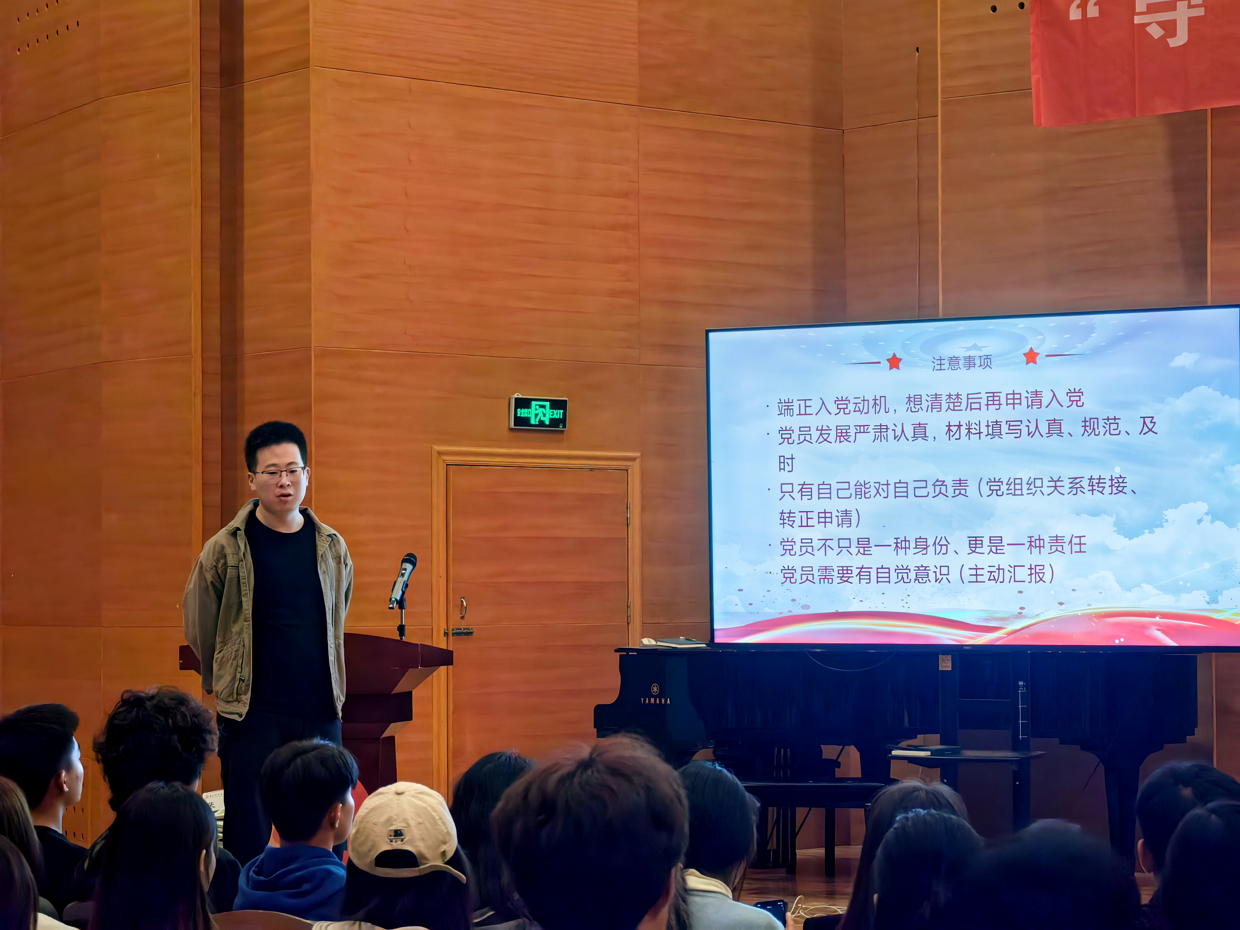 盛士峰以“关于党员发展,你要知道的事”为主题,梳理了入党整体流程,介绍了党员发展相关工作。分享了如何成为一名光荣的积极分子、预备党员以及正式党员,鼓励学团干部不断提升自我,汲取信仰力量,坚定理想信念。