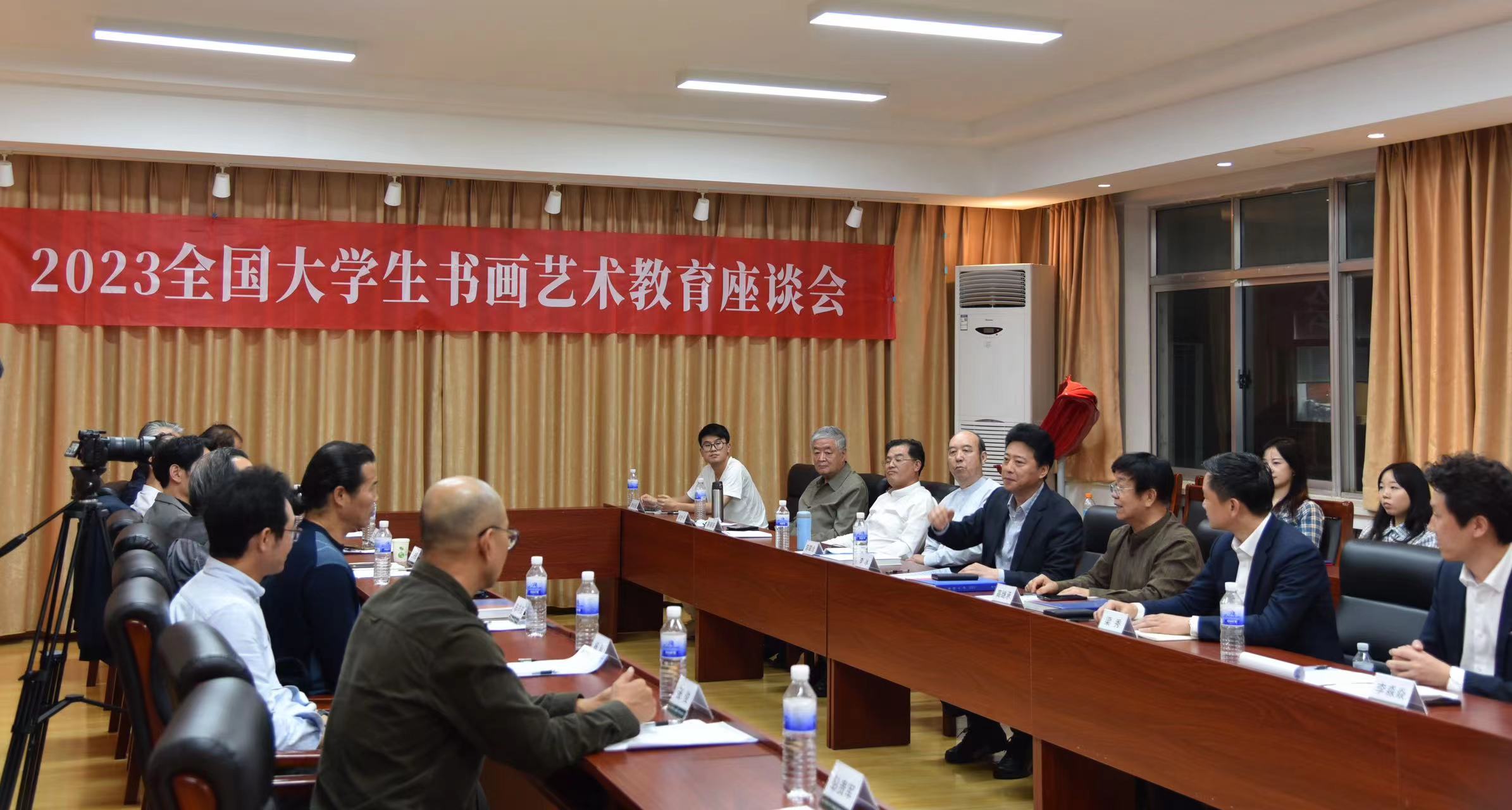 10月31日下午,2023全国大学生书画教育座谈会在beat365在线唯一官网举行。中国硬笔书法协会书记、副主席兼秘书长李冰,副主席陈联合、高继承,执行秘书长梁秀,主席团委员、重庆市硬笔书法家协会主席蔡锡田,高校书法工作部名誉部长辛世平,北京流香画院院长陈祥法,beat365在线唯一官网院长李宏文,有关高校代表出席座谈会。座谈会由中国硬笔书法协会书法教育专业委员会副理事长兼秘书长、高校书法工作部部长、青岛艺术产业学院副院长李淼焱主持。