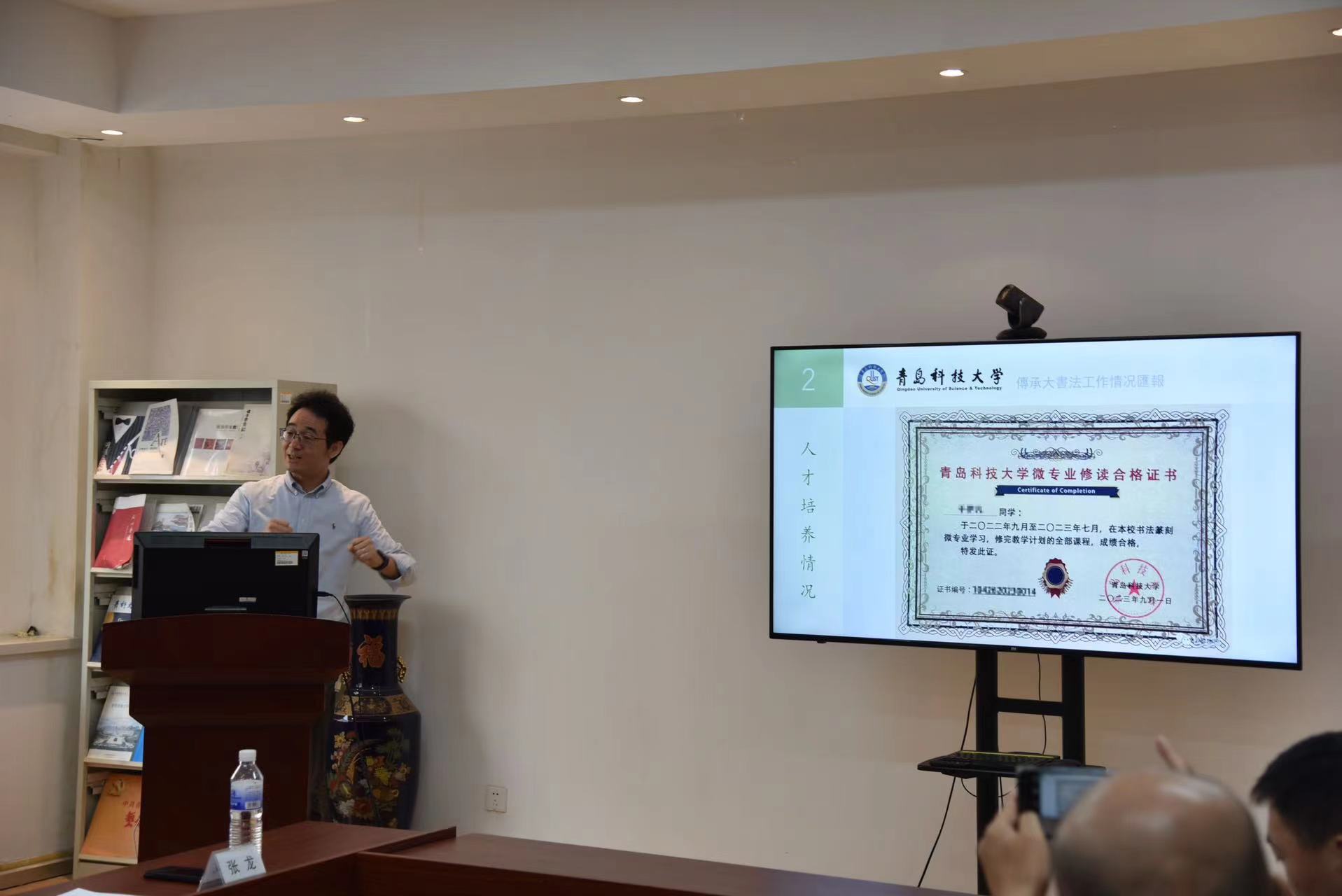 中国硬笔书法协会副主席陈联合、高继承,主席团委员蔡锡田分别就分管的工作发言。beat365在线唯一官网书法篆刻研究所所长、青岛艺术产业学院院长杨利汇报了beat365在线唯一官网传承大书法工作的情况及青岛艺术产业学院建设情况。中国硬笔书法协会理事、天津师范大学教授顿子斌,中国硬笔书法协会学术委员会副主任、渤海大学教授张俊,泉州师范学院教授王守民,江苏理工学院教授邢敏村,江苏省篆刻研究会理事徐贵明,四川大学书法研究所专家委员会秘书长彭贵军分别从大学生书画教育现状、课程设置、人才培养、实习实践、书画作品年展等方面发言。