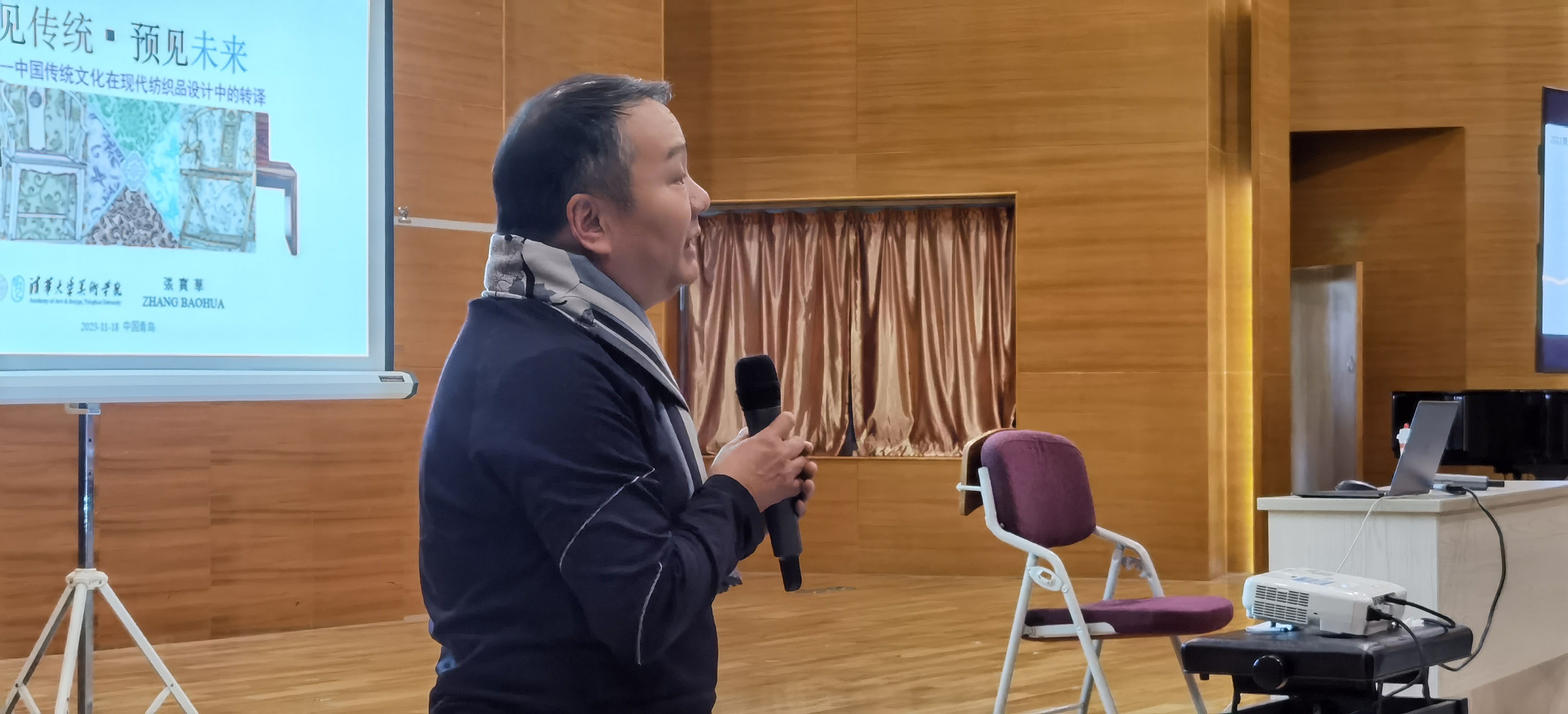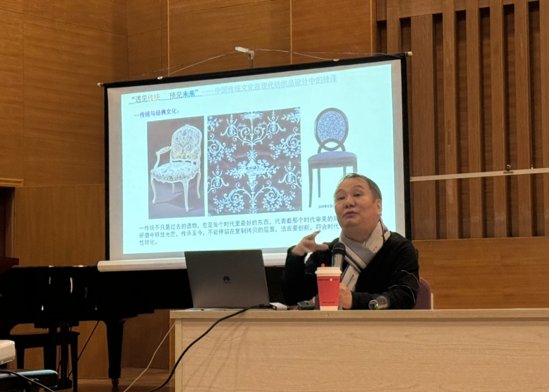本次讲座以“遇见传统 预见未来”---中国传统文化在现在纺织品设计中的转译为主题。首先,张宝华教授向同学们介绍了大学的重要性,大学在推动科技革命中发挥着重要的作用。“速度效应”是信息传播的速度与信息的沉淀,速度效应越来越偏向“全球化的显性”,帮助大家理解人类历史始终保持的开放状态,同时怎样处理自身传统与全球化趋势的关系,具有积极的启示作用。
