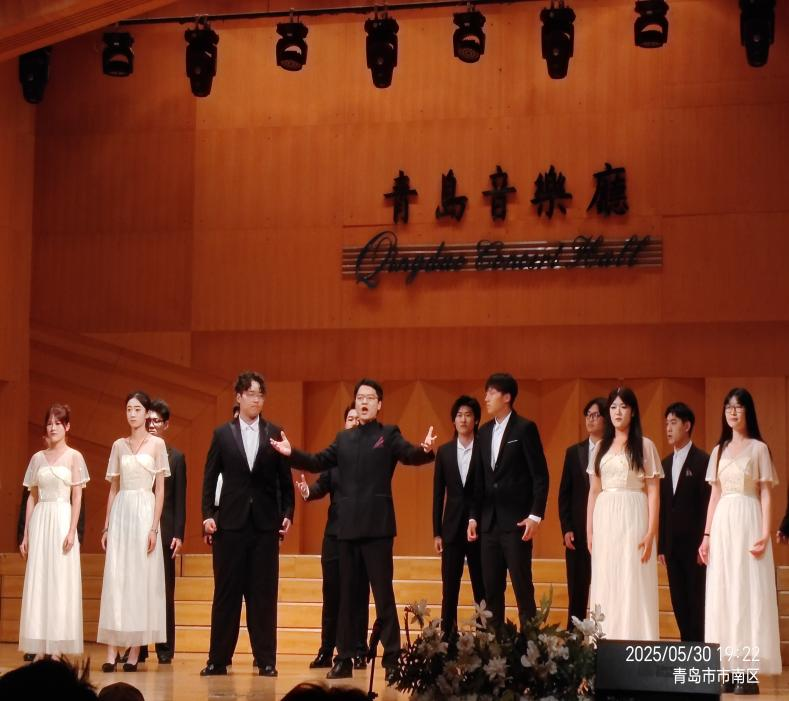 5月30日晚,由青岛市南区文联、市南区文化和旅游局、琴岛音乐家协会、青岛高校音乐联盟共同主办的“五月芳华”音乐会在青岛音乐厅举办,本次音乐会汇集了青岛高校音乐专业教师和学生近百人参加,以重唱、重奏、歌剧片段等形成呈现。我院音乐系声乐专业学生在李猛老师带领下,结合曹芳芳老师歌剧排演课前期排练,倾情演唱了歌剧《八一起义》选段“拿起枪,去战斗”,以激昂的节奏和动人旋律艺术化再现了南昌起义的场景,让“建军精神”在观众心中重生,引发了良好反响,更彰显了音乐系专业教学和舞台表演水平。