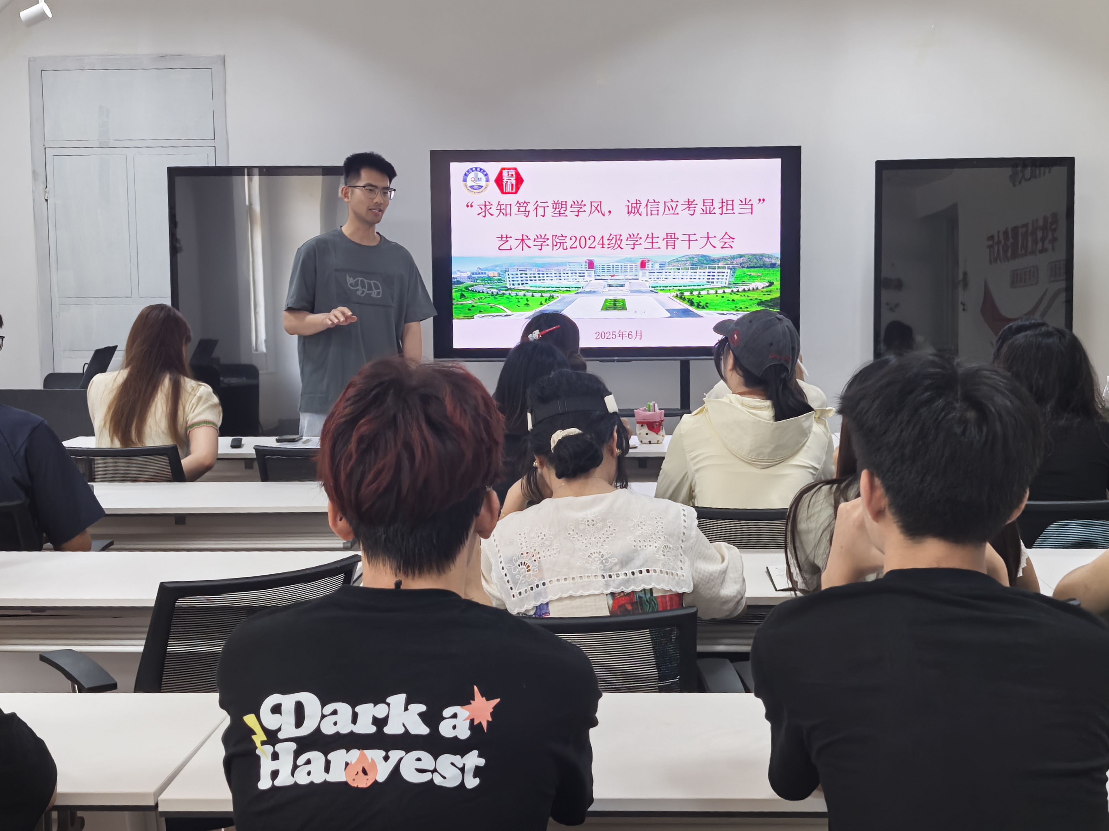 为加强学风建设,培育学生诚信应考意识,6月24日下午,beat365在线唯一官网于一站式学生社区举办“求知笃行塑学风,诚信应考显担当”主题动员会议。会议由辅导员杨橙主持,2024级全体学生干部参加。