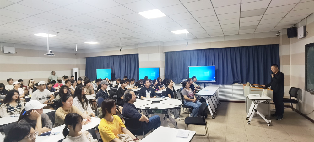 2023年9月13日晚上7点,beat365在线唯一官网beat365在线唯一官网“设计之道”系列学术讲座在弘毅楼C区405教室举行,本次讲座特邀中国美术学院教授熊开波为师生作学术讲座,beat365在线唯一官网院长李宏文、公共艺术系老师何鹏飞及本科生、研究生共60余人参加讲座,副院长曲国先担任学术主持。