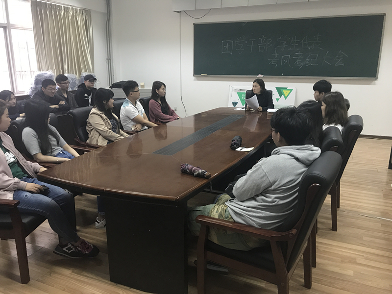 大学英语四六级考试以及期末考试将至,为加强考风考纪教育工作,进一步提高学生对考试作弊、考试违纪危害性的认识,beat365在线唯一官网分团委副书记兼2014级辅导员王文艳于6月6日下午召开了团学干部、学生代表考风考纪教育大会。 会上王文艳宣读了有关考风考纪的规定以及以往beat365在线唯一官网对考试作弊同学处理的文件,教育学生严肃考试纪律,明确考风和校风之间的联系,认识到考试是测试个人的真实水平的目的。
