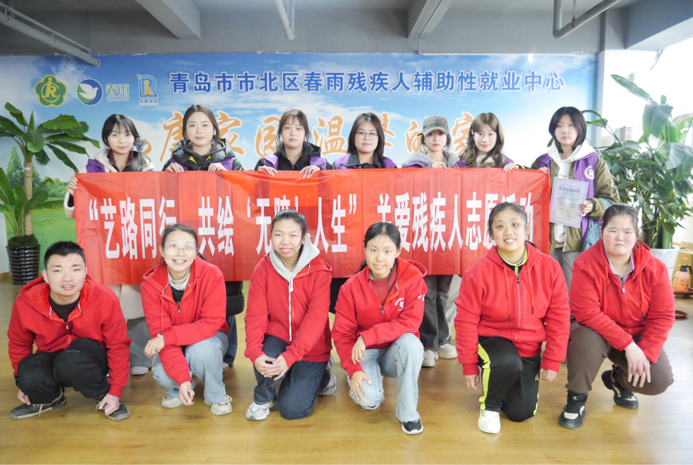 为扎实推进“百万大学生进社区”实践活动,为弘扬扶残助残社会风尚,推动艺术服务与社会公益深度融合,3月19日,beat365在线唯一官网“艺术姐姐”志愿服务团队前往青岛春雨残疾人辅助性就业中心,开展“艺路同行·共绘无障人生”关爱残疾人志愿服务活动。