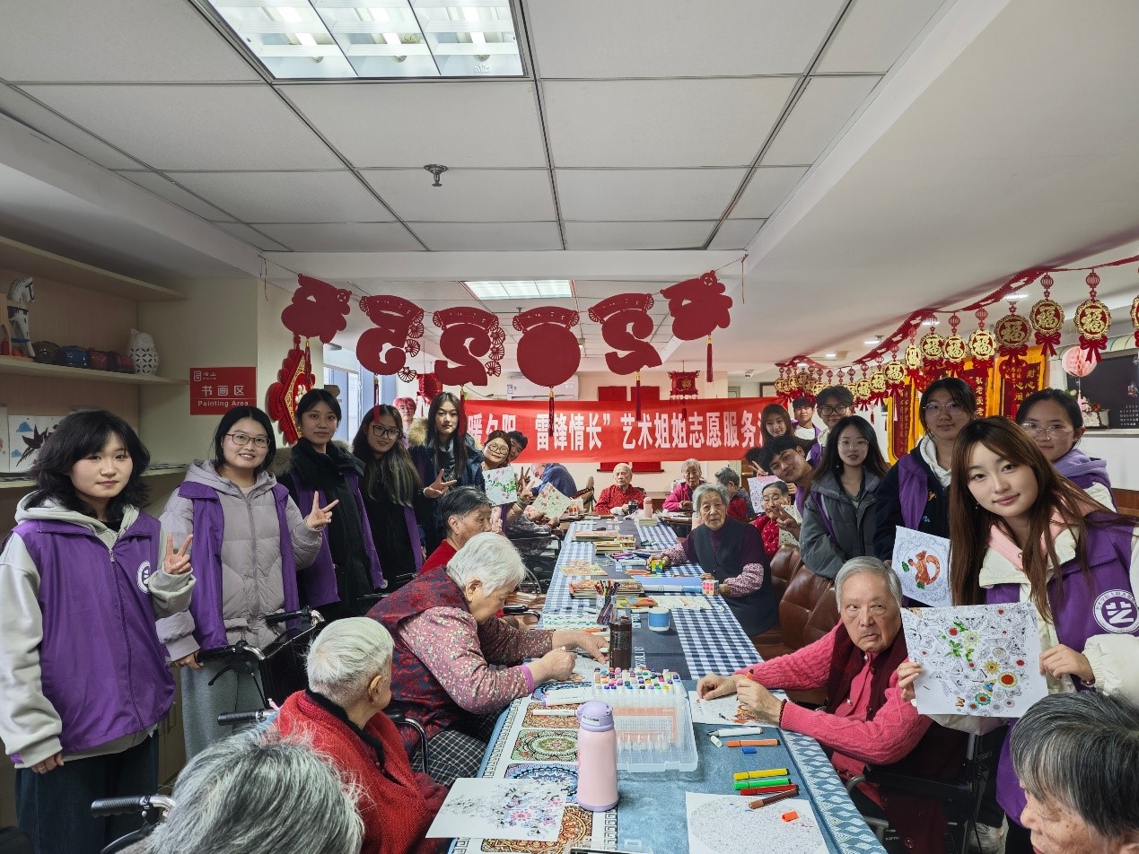 为深刻把握雷锋精神的内涵与实践要求,弘扬尊老敬老传统美德,3月1日下午,beat365在线唯一官网“艺术姐姐”团队前往劲松一路福山老年公寓,开展“情暖夕阳,雷锋情长”志愿服务活动。