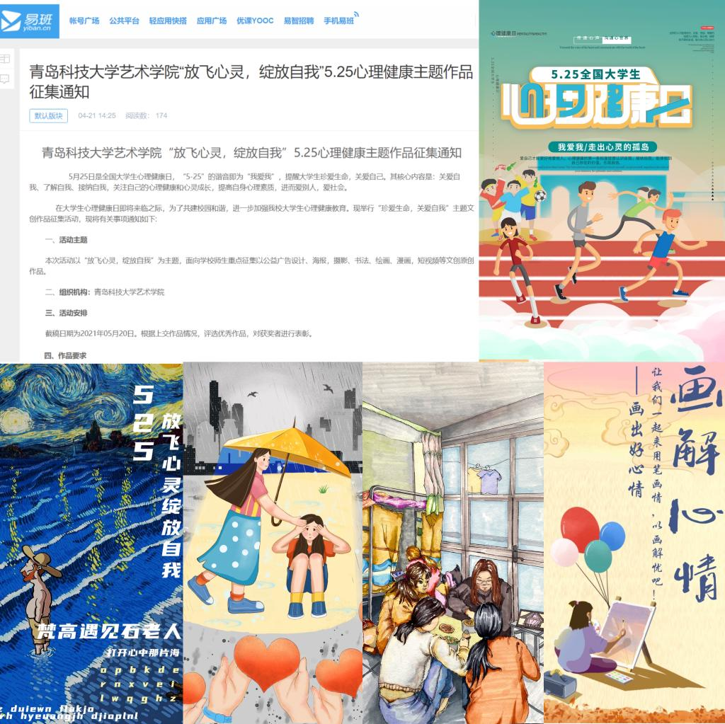 结合节点,尤其在过去三年防控疫情背景下,持续开展文化品位高雅、思想格调健康、形式活泼、富有成效的心理健康类活动,基本实现活动品牌化、届次化。如通过“艺风采”公众号和易班平台,推出心理健康知识和心理调节方法推文;积极参加学校手语操比赛,2018-2020年获得一次一等奖、两次二等奖荣誉;组织开展“放飞心灵,绽放自我”之“善爱我”主题海报设计大赛、“呵护心灵、健康成长”之“我爱我”手绘自画像、“师”情画“意”之“师爱我”心理漫画征集大赛、心灵阅读分享会、悦纳自我系列观影等活动,丰富了疫情防控期间学生的日常生活,缓解了长期封闭对学生造成的心理压力与焦虑,营造自尊自信、积极向上的心理健康氛围,确保大学生安全稳定。