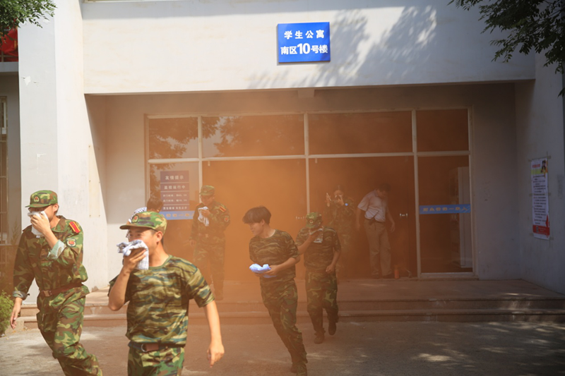10:00疏散演练正式开始。为检验师生在楼宇内发生火灾后的疏散逃生能力,演习场景设计为男生宿舍10号楼,自动报警系统报警后,场浓烟翻滚,火势和浓烟威胁着楼内师生的“生命财产安全”。学校迅速启动应急救援疏散预案, 迅速拨打火警电话119,学校相关部门领导及119火警迅速到达现场场处置“险情”,现场工作人员引导师生紧急疏散、撤离到安全地点,并清点人数。整个演习过程中,凭着工作人员的有序组织和师生们平时所掌握的消防安全常识,10分钟内全楼师生得以安全撤离。