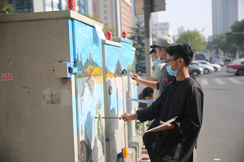 依托志愿服务,践行“一学一做”。学院依托“向日葵”志愿服务队,先后赴登州路、山东路、延吉路手绘电表箱,并赴市北区儿童公园、威海路进行墙体手绘,结合自身专业,用画笔描绘城市,用艺术装点青春,用实际行动深刻践行“一学一做”教育实践活动精神。