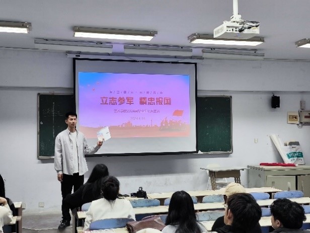 毕业班辅导员杨橙通过微信群向全体毕业生分享《参军报国 淬炼青春—致2024届毕业生的一封信》,通过主题班会的形式,围绕“参军意义”“应征入伍条件”“报名基本流程”“享有的优待权益”“全国征兵网的使用”等方面进行讲解,动员毕业生积极应征入伍,到军营中施展聪明才智。同时,对学院2024届本科应届毕业生进行入伍意愿摸底排查,建立了征兵动员动态信息库。