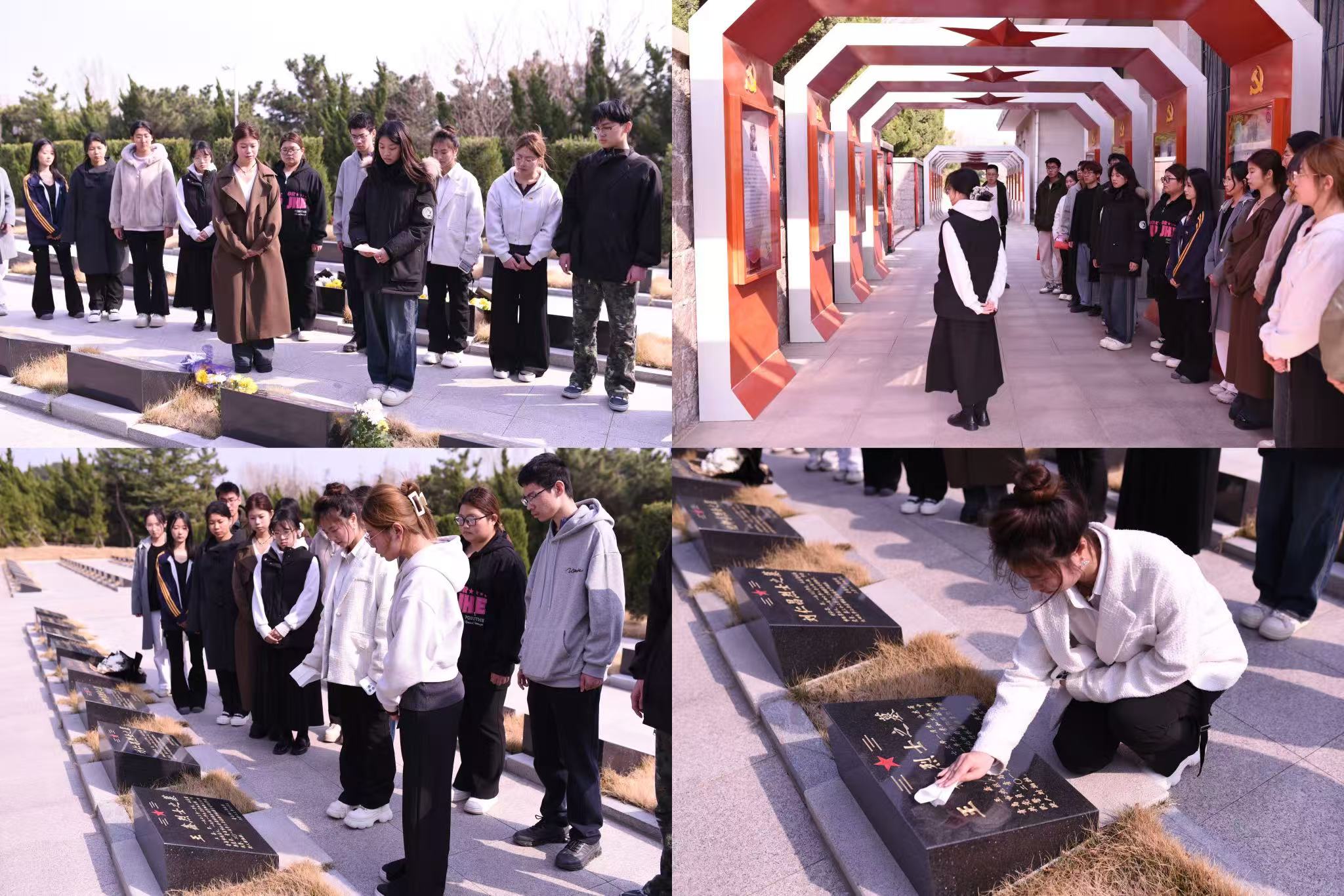 为缅怀革命先烈,赓续红色血脉,弘扬爱国主义精神。3月31日,beat365在线唯一官网党委副书记兼副院长丁一宁,辅导员盛士峰、杨橙,“党员先锋队”学生代表20余人前往崂山烈士陵园开展“追思英烈,薪火相传”为主题的清明祭英烈教育活动。