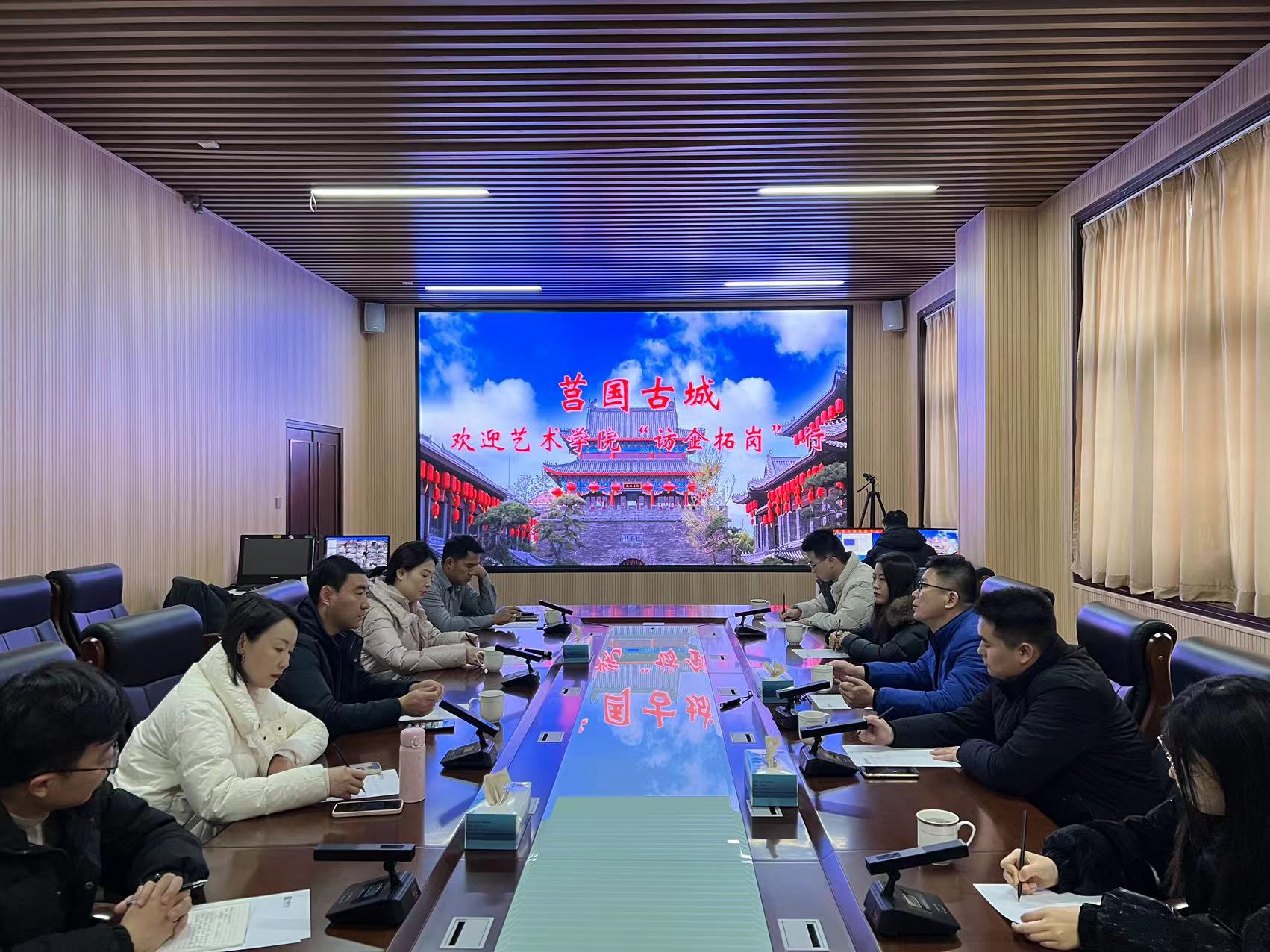 在莒国古城,刘名森一行与莒县文旅局副局长荆培波,莒国古城总经理王亚蕾、副总经理孙刚等进行交流座谈。刘名森详细介绍了beat365在线唯一官网,对学院学科专业结构、学生就业创业工作等做了详细说明,学院能够发挥专业、师生优势,在人才招聘、实习实训、文创设计、文艺表演、社会实践等方面与莒国古城加强合作,实现产学融合。荆培波介绍了莒县文旅资源,期望beat365在线唯一官网发挥人才优势,指导、支持莒县文旅发展,提升古城建设水平。王亚蕾、孙刚就古城旅游业发展概况、景区布局、主要业绩、文艺汇演、开发保护、业态分布及周边配套等方面进行讲解介绍,欢迎beat365在线唯一官网师生提供专业指导、优质文艺节目,为古城的发展注入“新血液”、贡献“新力量”,促进古城建设发展。古城将创造各种条件,为学生实习、就业提供支持。