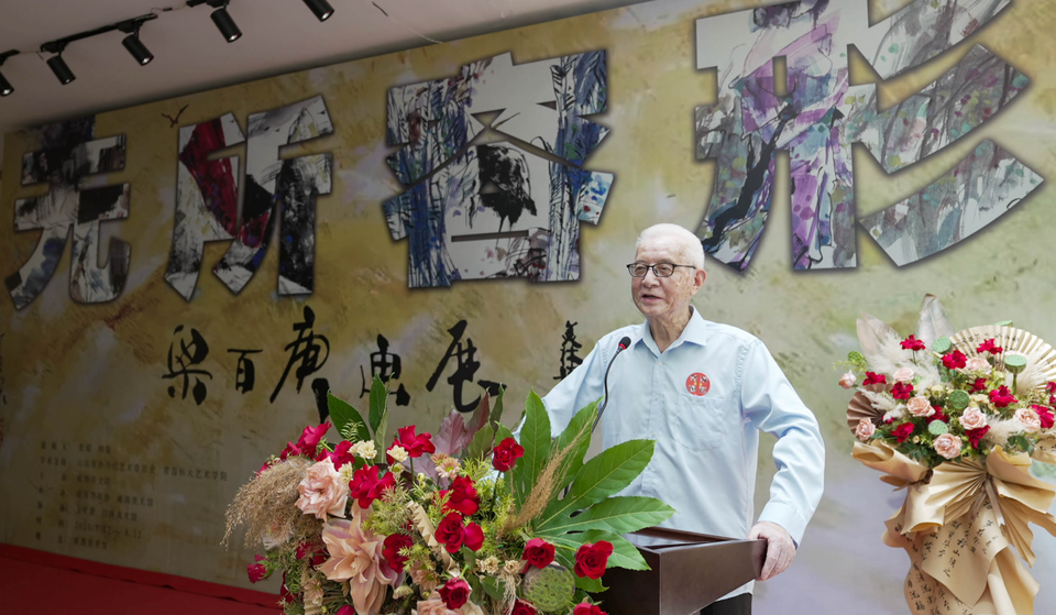 活动现场,94岁高龄的山东师范大学教授宋遂良先生也来观展。宋老给予梁百庚及画作高度评价,“梁百庚先生不但是一名充满人文情怀的艺术家,也是一名优秀的教育家。他的作品有点‘养在深闺人未识’,今后肯定会有更多的人来关注他和他的作品。”